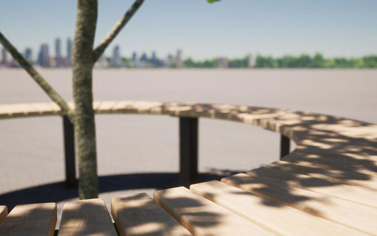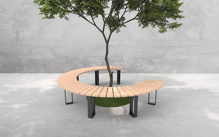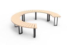 Circular bench without backrest with 8 mm galvanised and powder-coated steel plate frame according to different RAL colours. Seat made of autoclave-treated pine slats, 35 cm long, 4.5 cm thick. 35cm long, 4.5cm thick.